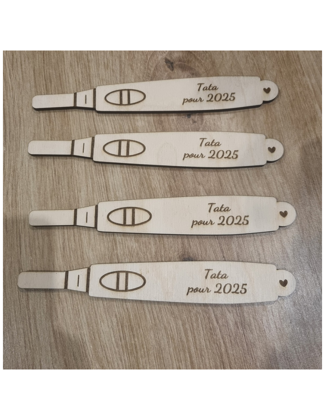 Découvre ce test de grossesse en bois gravé, une idée unique pour révéler votre belle nouvelle à vos proches.