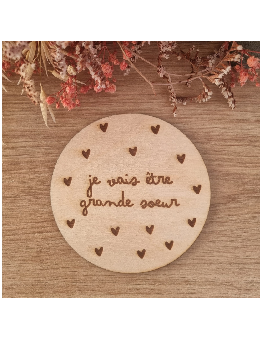Plaque en bois annonce naissance "Je vais être grande sœur"