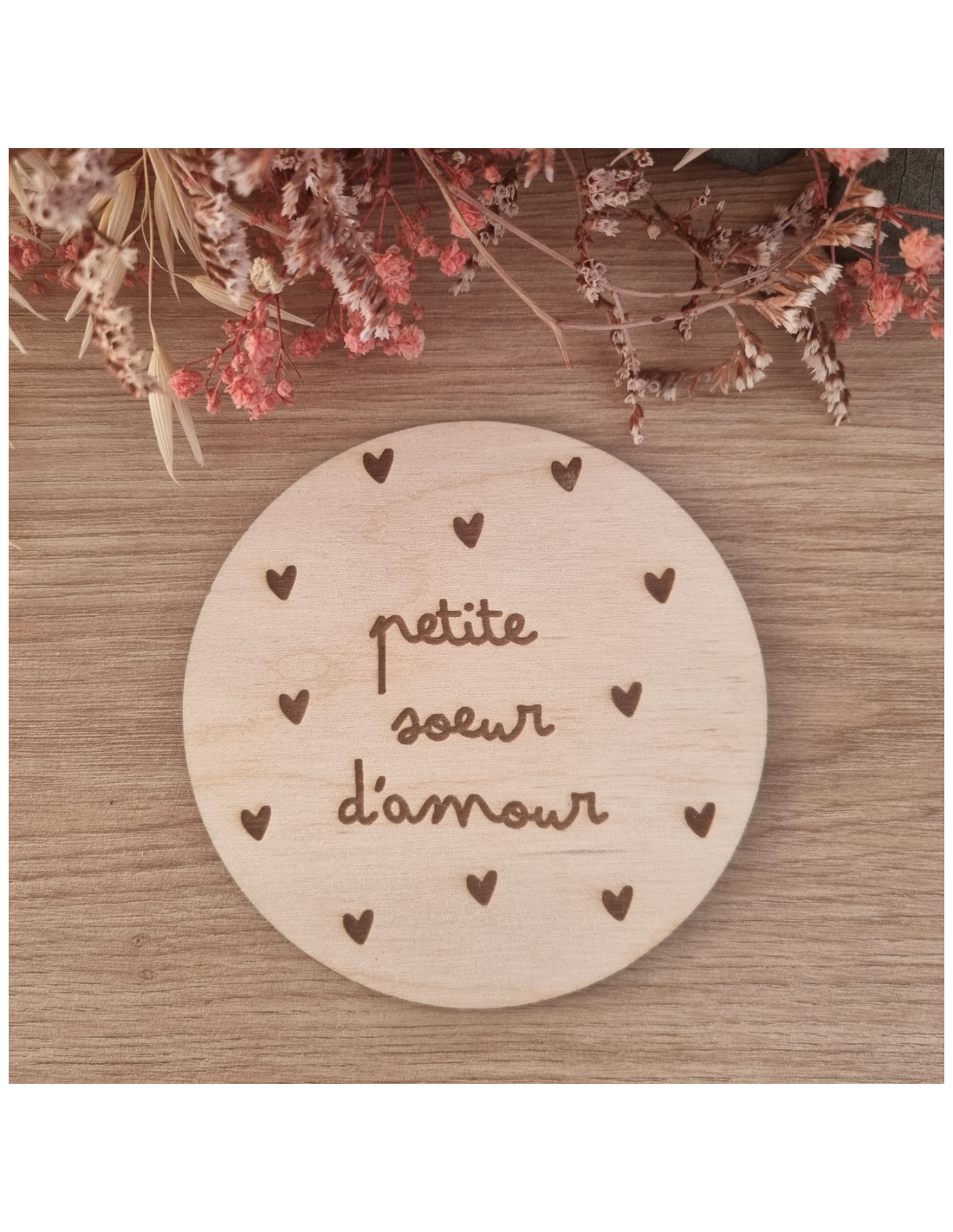 Plaque en bois annonce naissance "Petite sœur"