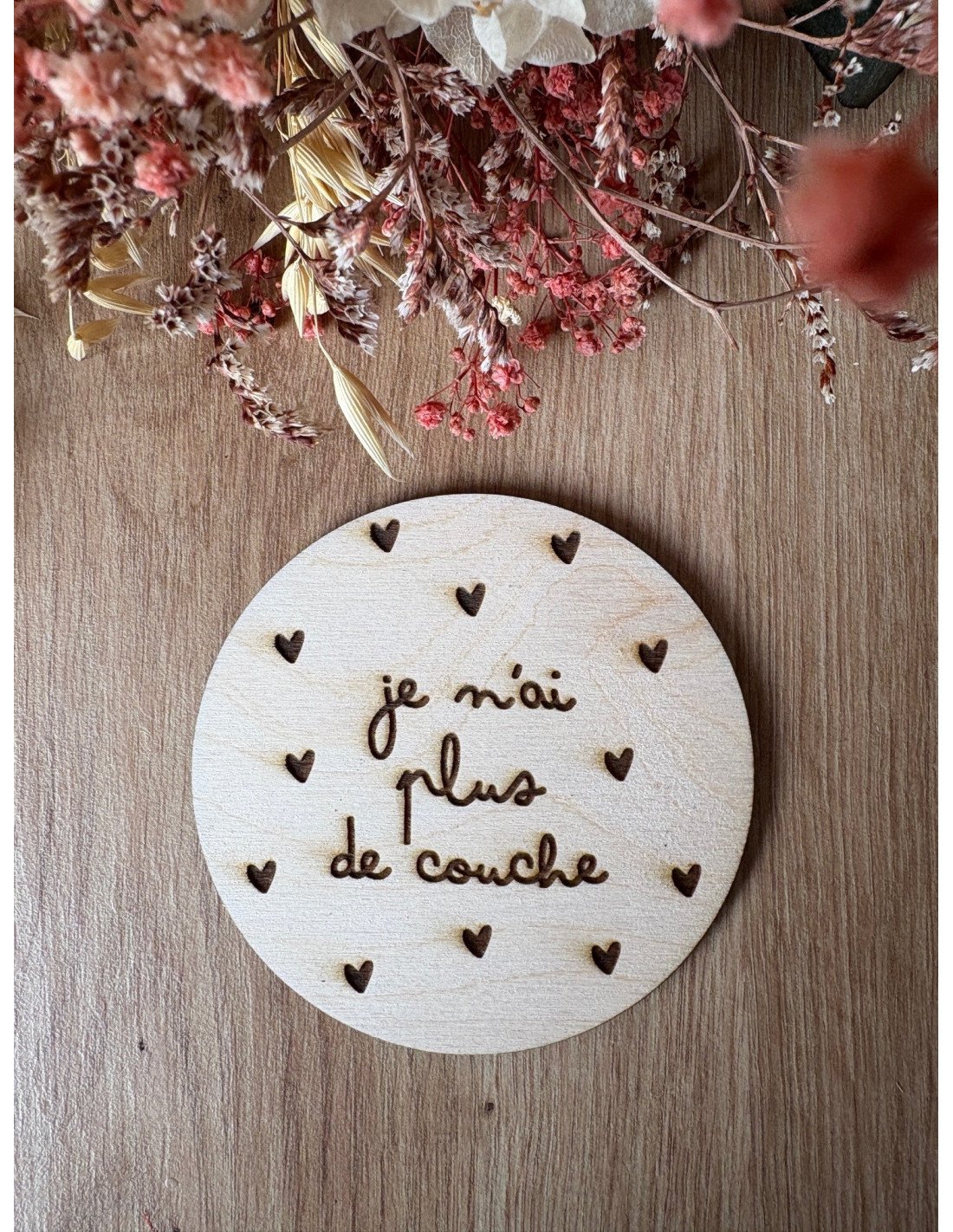 Plaque en bois annonce naissance "Je n'ai plus de couche""
