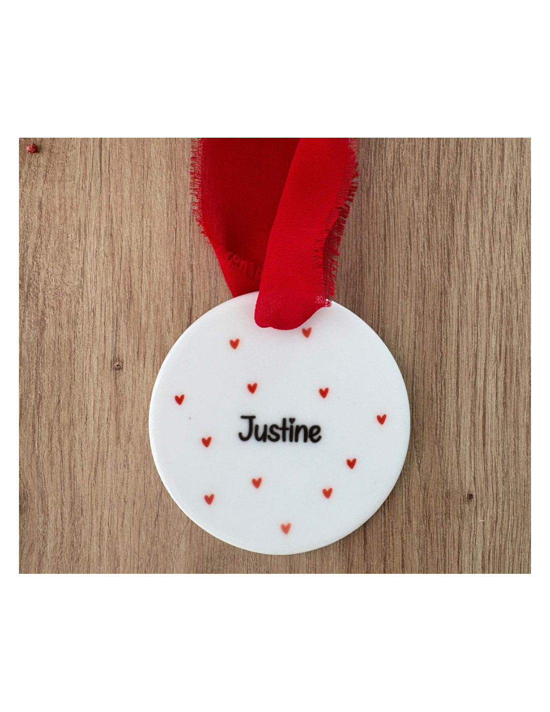 Boule de Noël personnalisée en céramique – Prénom +petit cœur