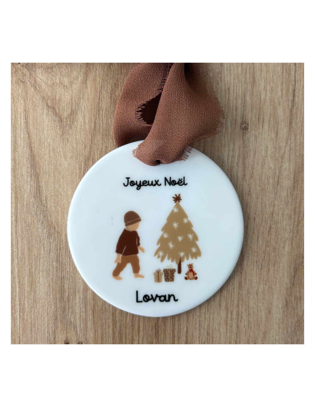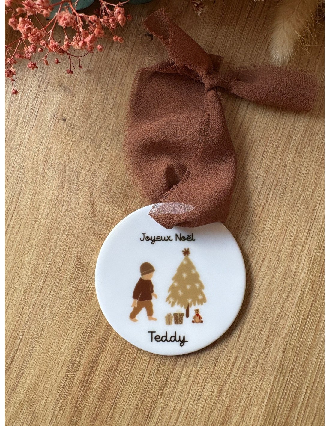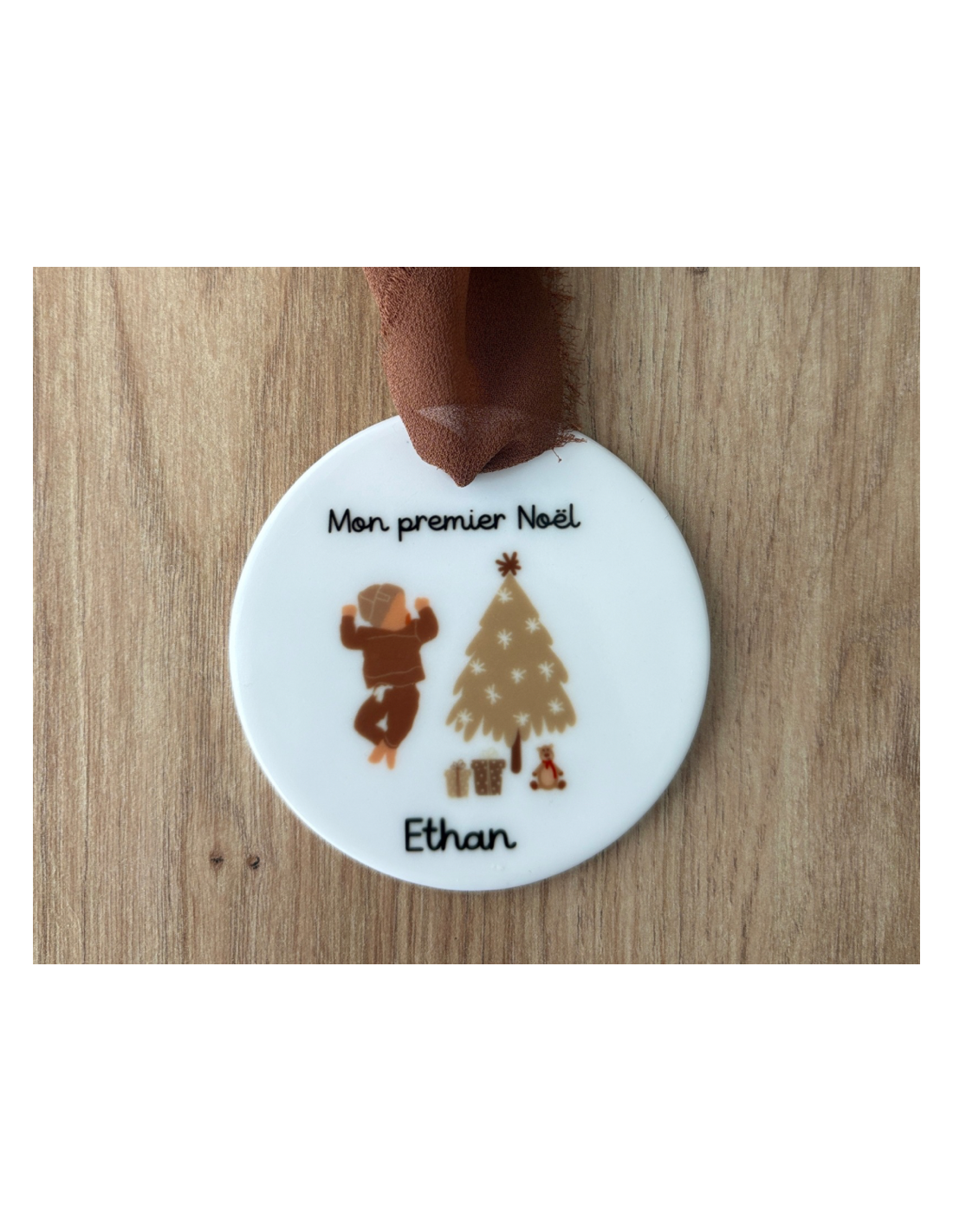 Boule de Noël personnalisée en céramique – Prénom + logo au choix 🎁