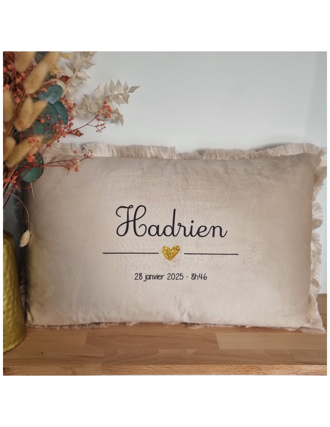 Un coussin tout en douceur et élégance, parfait pour immortaliser une naissance ou décorer une chambre d’enfant avec goût 🌿
