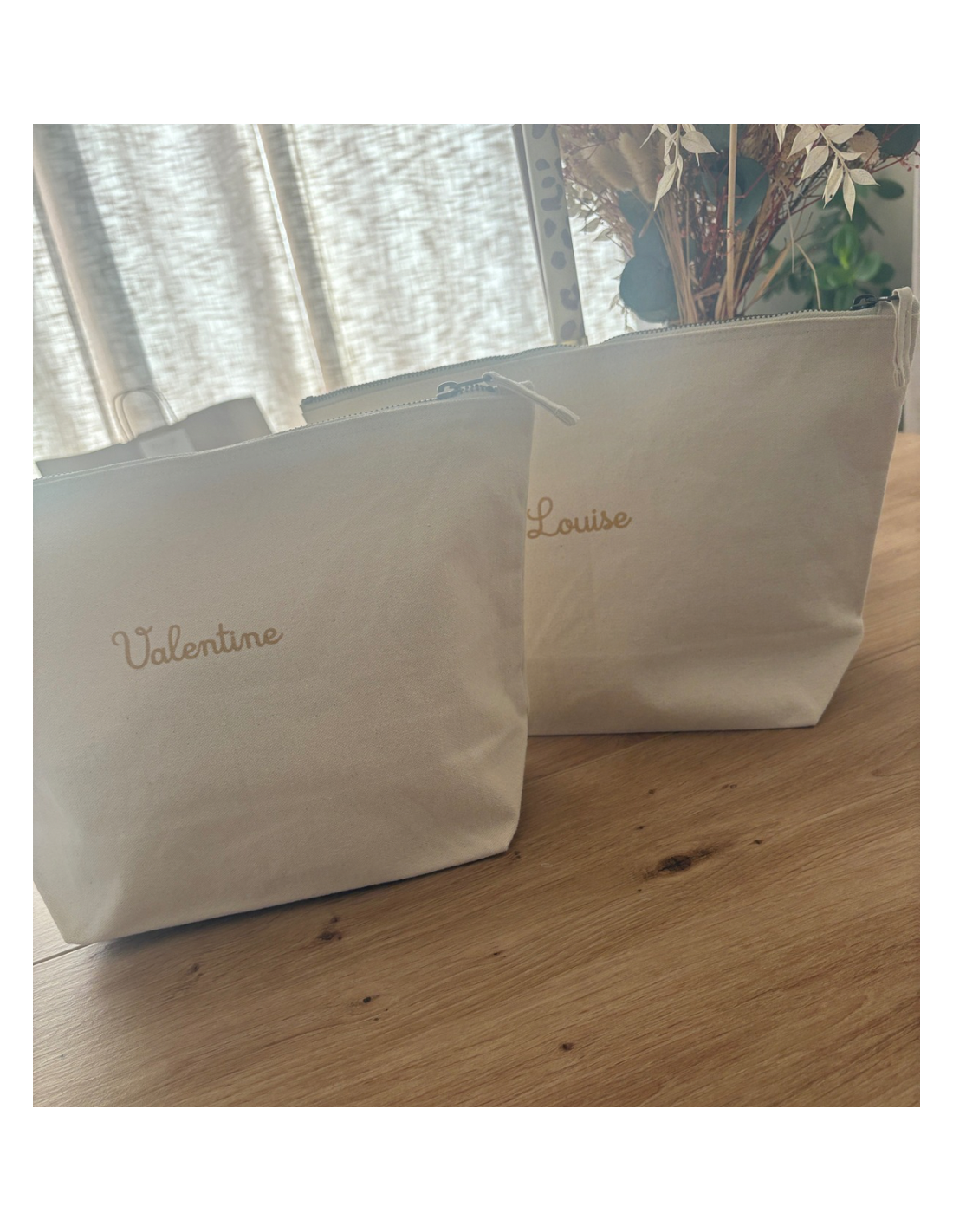 Une grande pochette de 5 litres, parfaite pour tout ranger avec style. Personnalisez là avec un prénom, une phrase ou un petit mot doux !
